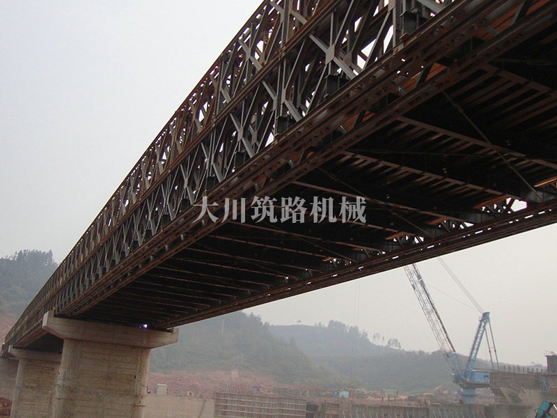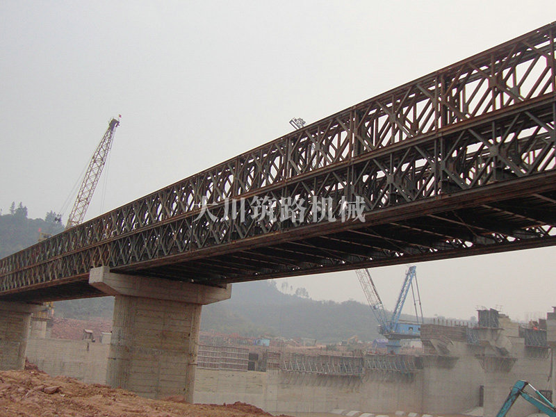 鋼橋型號(hào):39M+39M+39M三排雙層結(jié)構(gòu)下承式鋼橋。